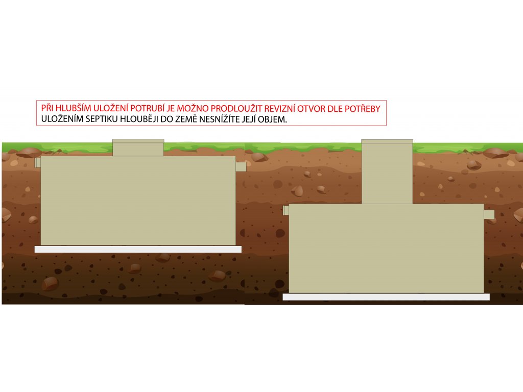 - vodotěsný tříkomorový septik s přípravou prostupů pro přítok a odtok upravenými na míru dle Vašeho zadání