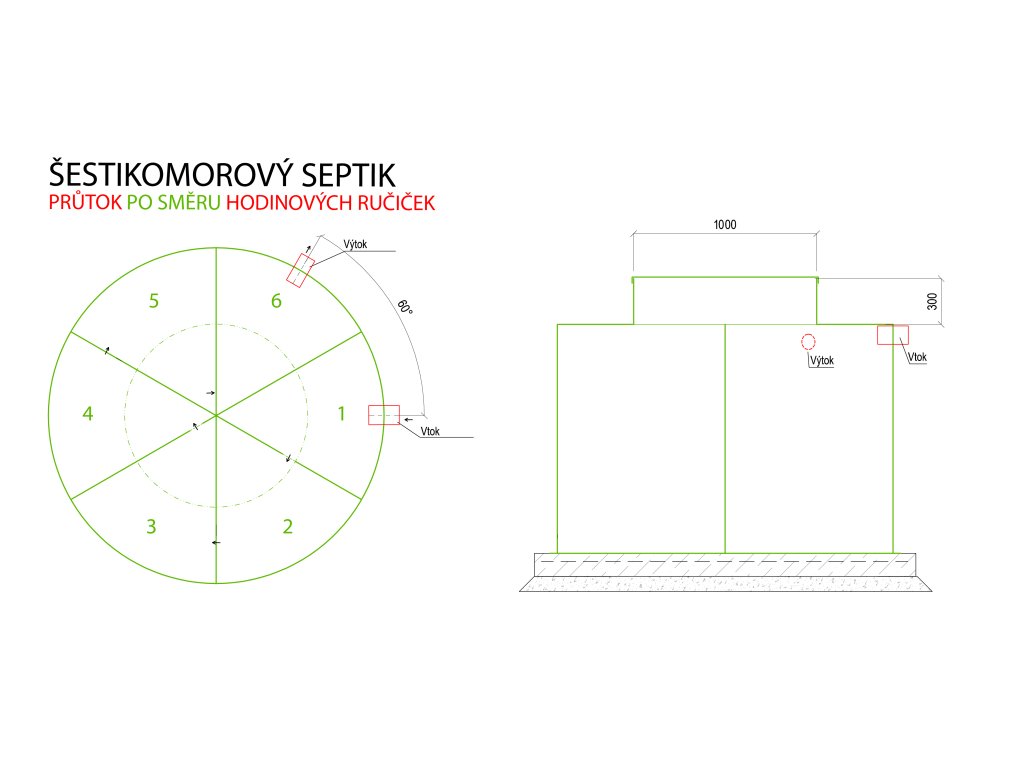 - vodotěsný šestikomorový septik s přípravou prostupů pro přítok a odtok upravenými na míru dle Vašeho zadání