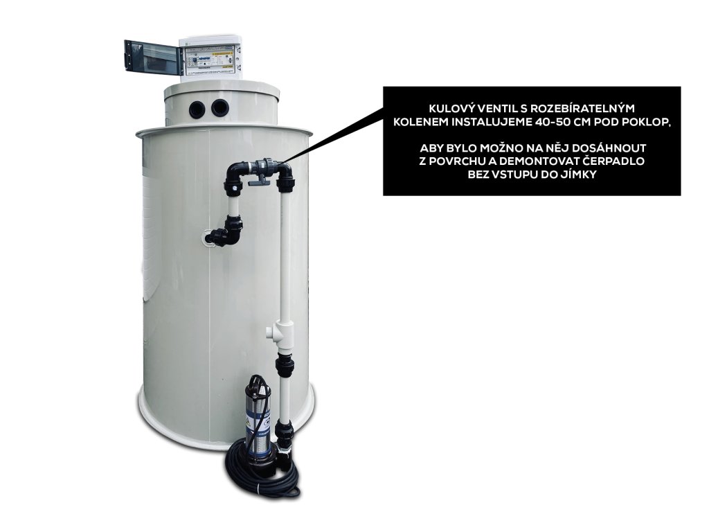 Vnitřní armatura je připravena tak, aby byl kulový ventil s rozebíratelným kolenem umístěn maximálně 40-50cm pod zemí a dosáhli jste na něj z povrchu rukou. V případě poruchy čerpadla nebo nutnosti servisu uzavřete kulový ventil a povolte šroubení na koleni spojující ventil s trubkou vedoucí k čerpadlu, čímž je od sebe oddělíte. Za potrubí můžete čerpadlo vytáhnout. Čerpadlo tedy můžete vždy z jímky vytáhnout bez nutnosti vstupu do ní. Rozebíratelná část je vždy nad hladinou a tak není znečištěna od splašků. Mezi čerpadlem a tímto ventilem je instalována zpětná klapka s koulí bránící navracení čerpané kapaliny z potrubí v provozním stavu.